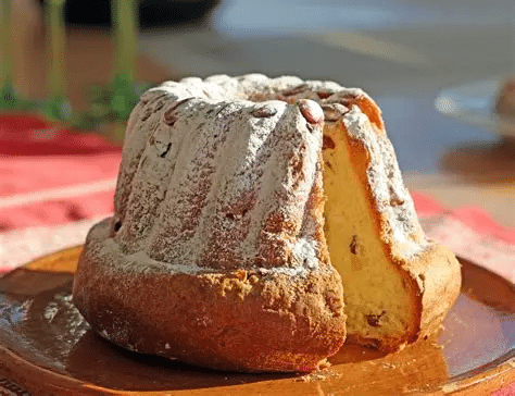 Garnir avec une amande le fond de chaque cannelure du moule à Kugelhopf bien beurré. Remplir à moitié le moule et laisser lever pendant 6 h. Ne pas heurter le gâteau en le mettant à four doux , puis chaud.
